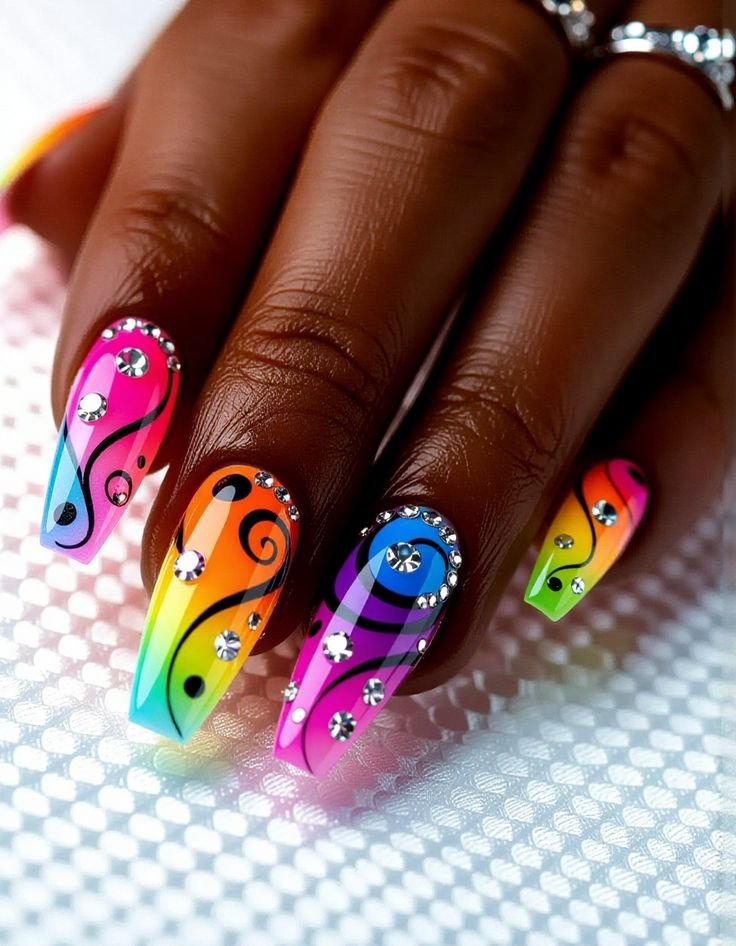 Vibrant designs with glitter, neon shades, and expressive patterns inspired by festive celebrations, cultural events, and party themes.